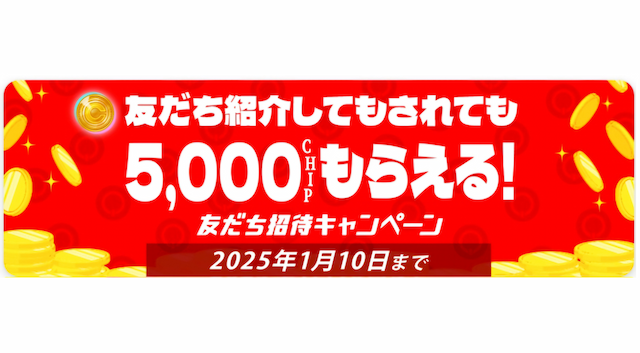 アップデートに併せて、現在『友だち紹介してもされても5,000CHIPがもらえる 友だち招待キャンペーン』を行っています。